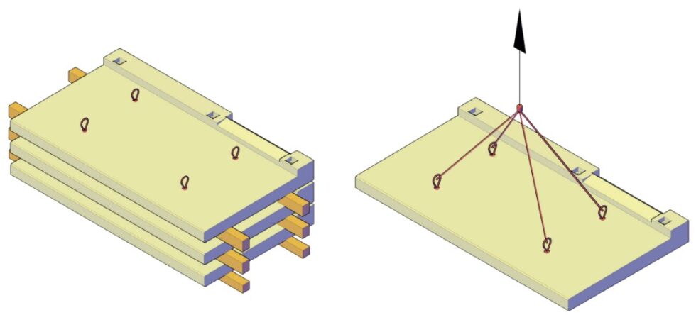 3 pav. Balkoninių plokščių sandėliavimo bei kėlimo schemos.