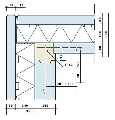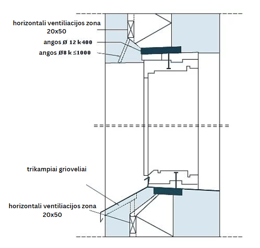 Sienų elementų kampinio sujungimo pavyzdys