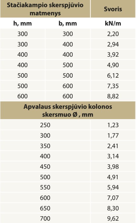 Apvalaus skerpjūvio kolonos gaminamos iki 7,6m aukščio ir 300 mm, 400 mm, 500 mm, 600 mm, 700 mm, 800 mm diametrų.