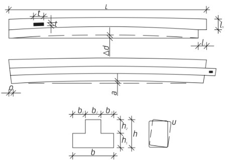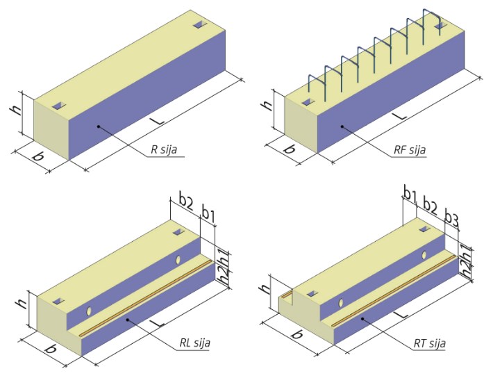 * - RT ir RL tipo 400/300/700 sijų išmatavimai reiškia: 400- sijos aukštis, 300- sijos viršaus plotis (be lentynų), 700- sijos apačios (kartu su lentynomis) plotis milimetrais.