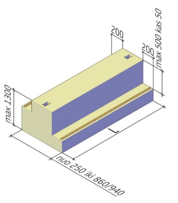 Įtempto armavimo elementai formuojami specializuotose gamybos linijose. Sijos formuojamos naudojant specialius klojinius, todėl racionalu ir ekonomiškiausia projektuoti vadovaujantis pateiktais gabaritais (2 pav.). Labai svarbu, jog sijų lentynų pločiai fiksuoti – 200 mm, o lentynų gylis kinta kas 50 mm. Jeigu sijos bus suprojektuotos įtelpant į pateiktas racionalias technologines ribas bei taikant aprašytą lentynų geometriją, gautas elementas bus pagaminamas našiai, efektyviai ir ekonomiškai. Visada galimi ir nestandartiniai sprendimai, tačiau jie visada būna brangesnė alternatyva. Dėl nestandartinių sprendimų kreiptis į UAB Betonika pardavimų skyrių.
