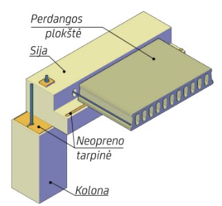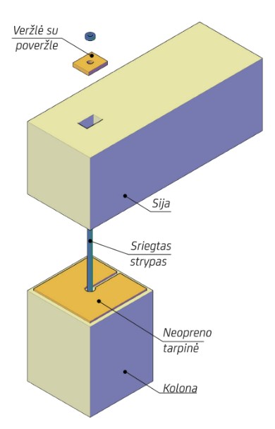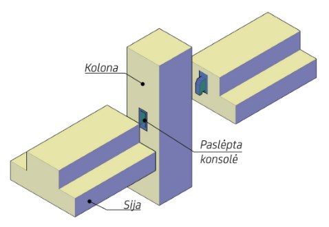 Dažniausiai sijos prie kolonų tvirtinamos varžtais ar sriegtais strypais. Visi jungties komponentai pateikti pavyzdyje (3 pav.). Varžtai gali būti išleisti kolonos gale arba konsolėse.