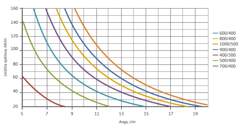 Grafikuose pataiktas leistinųjų apkrovų vertes sudaro siją veikiančių ilgalaikių, trumpalaikių ir kintamųjų apkrovų sumų skaičiuotinės reikšmės, neįvertinant sijų savojo svorio. Pavyzdžiui, sijos laikančios perdangą leistinoji apkrova yra: perdangos plokščių bei grindų sluoksnių svorių, visų galimų trumpalaikių ir ilgalaikių apkrovų skaičiuotinės vertės be savojo sijos svorio. Skaičiuotinės vertės jau padaugintos iš atitinkamų saugos koeficientų.