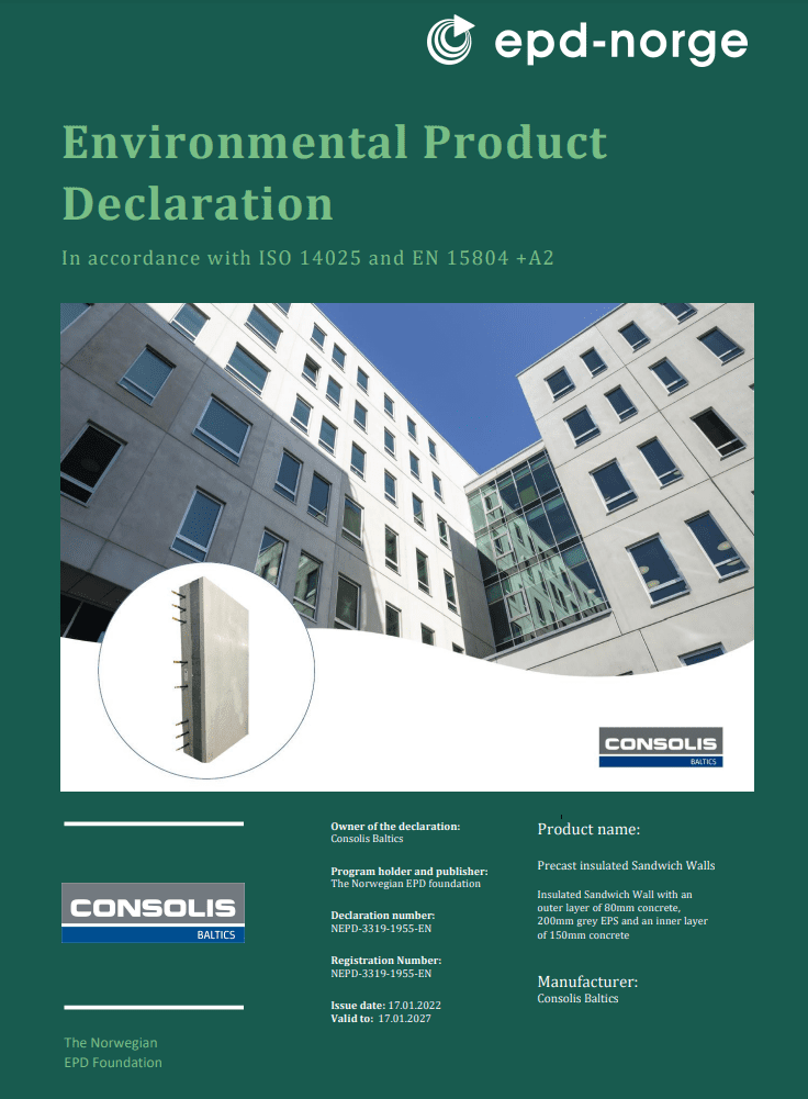 Consolis pristatė Consolis Green Spine Line® - sertifikuotus surenkamus sprendimus. kurių CO2 emisija yra bent 15% mažesnė nei vietiniai pramonės standartai.